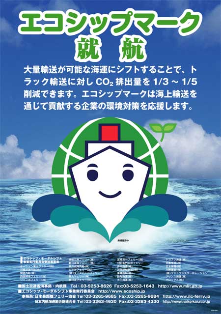「エコシップマーク就航」をタイトルに、海上輸送業界に初めて登場する「エコシップマーク認定制度」のイメージ訴求を図っていきます。